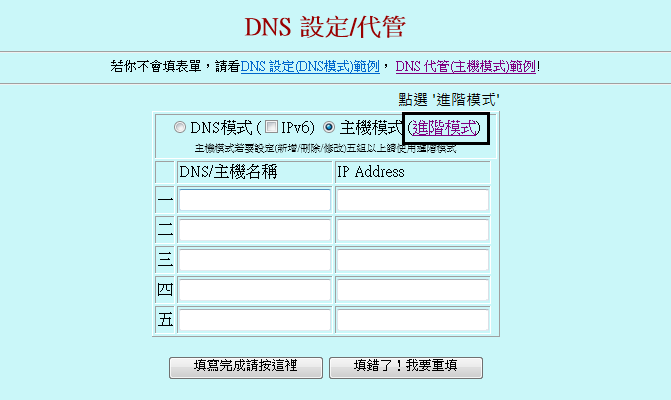 日後若需要加入 SRV 紀錄時,請改用 zoneedit 作為您的 DNS代管服務商。
