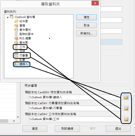 a. Outlook 的 CardDAV 連絡人預設資料夾為:\\Outlook\Contacts