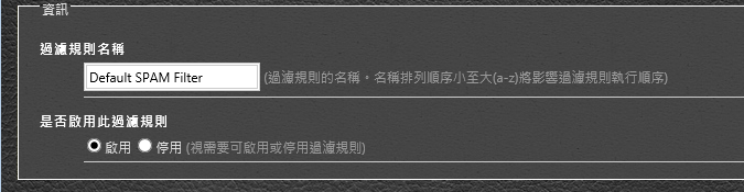 過濾規則名稱 - 我們可以取一些有意義的名字,例如:稽核規則、反垃圾規則 #1、反垃圾規則 #2